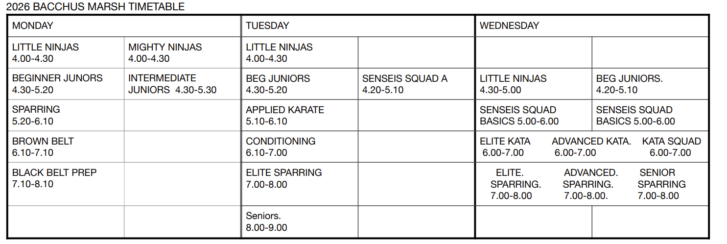 Being one of 3 Full Time Facilities in our club Shindo Karate Bacchus Marsh offers the highest level of training and fitness possible utilising current and traditional methods of Shotokan Karate.